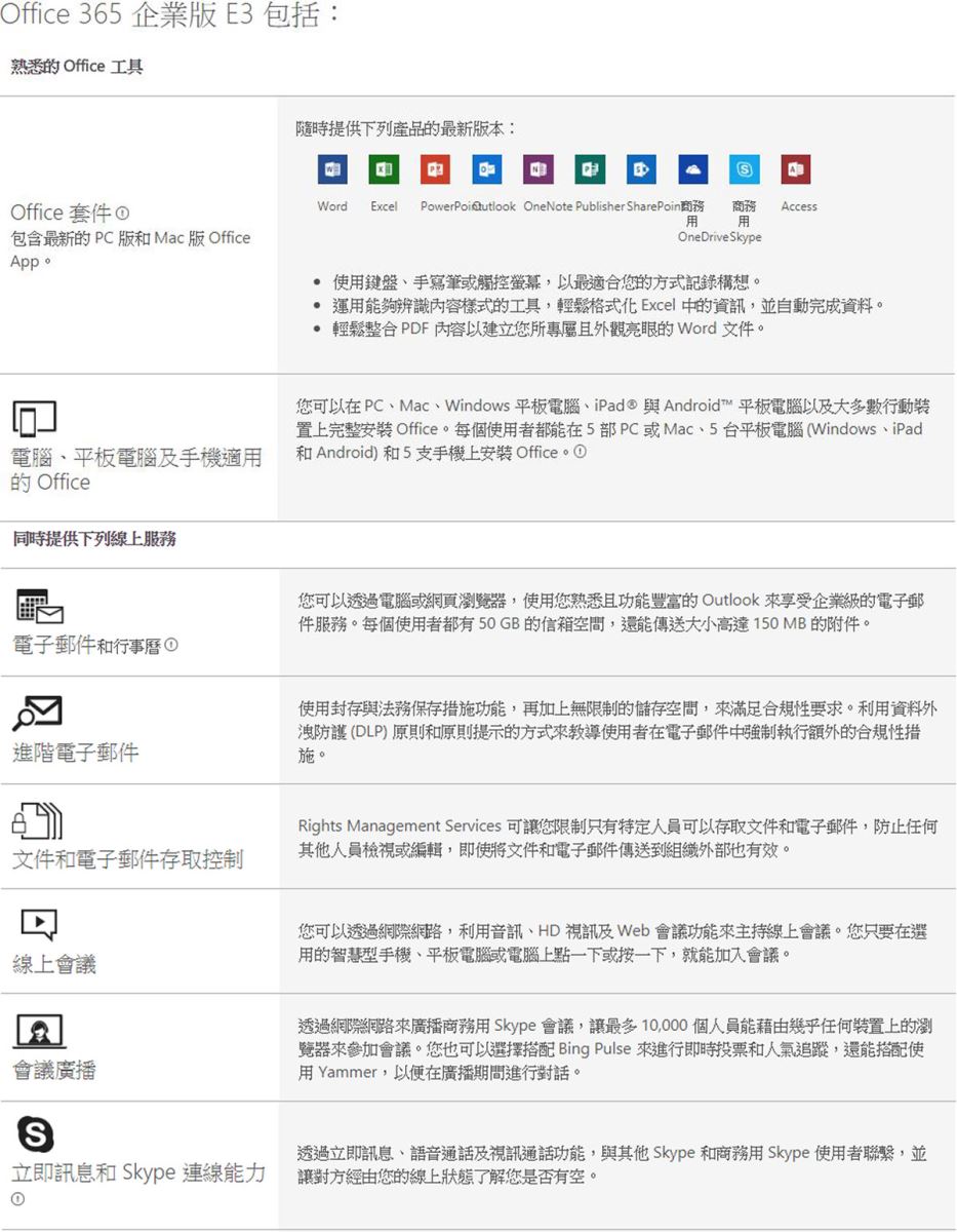 Office365 企業版 Enterprise E3 訂閱服務 (一年期)