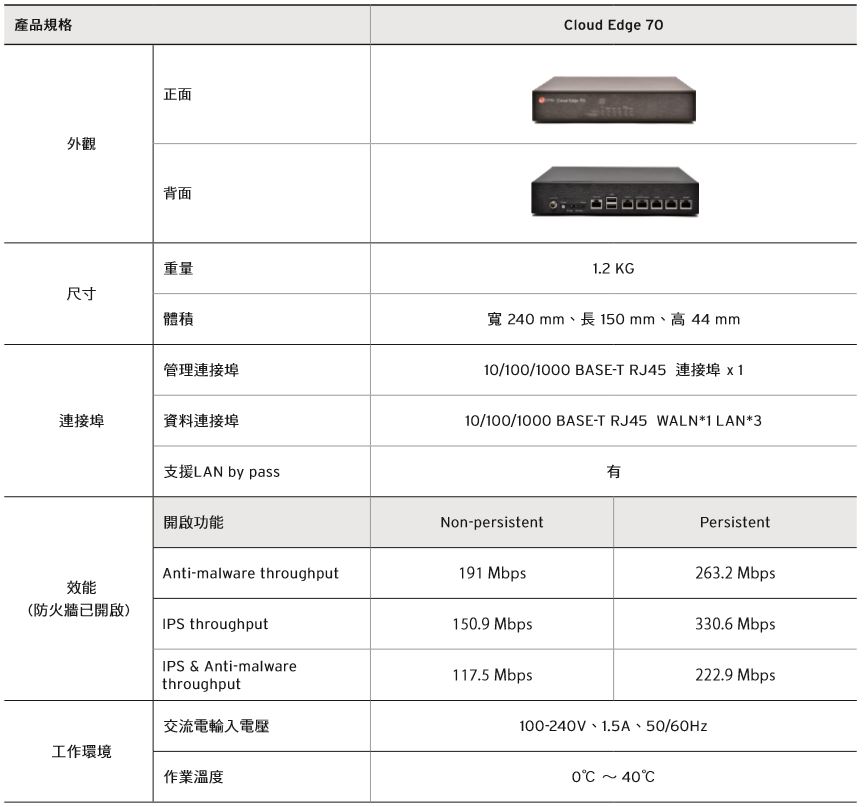 趨勢科技 Cloud Edge 70 含硬體/軟體/服務 一年授權